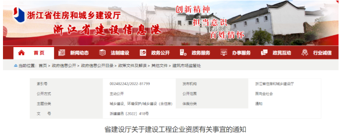 浙江省住建廳發(fā)布《省建設廳關于建設工程企業(yè)資質有關事宜的通知》,明確:
