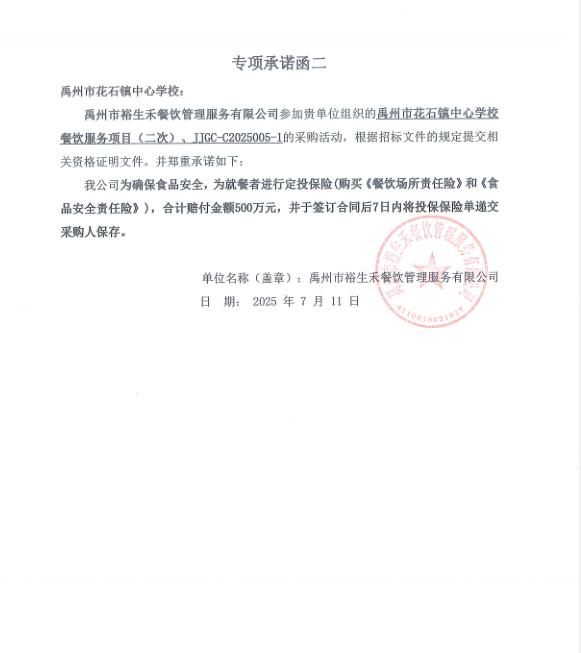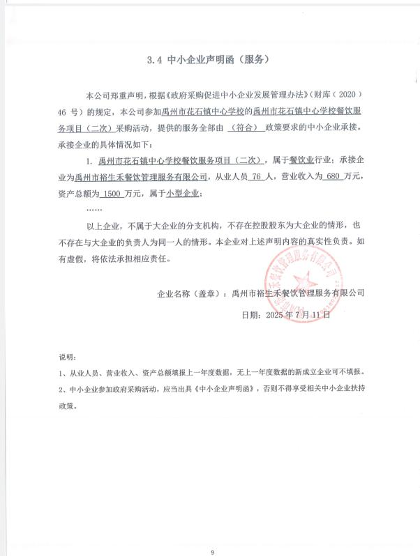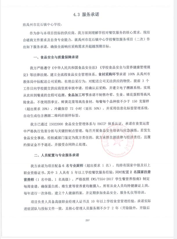 第一成交候選人:禹州市裕生禾餐飲管理服務有限公司