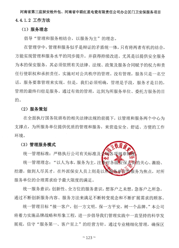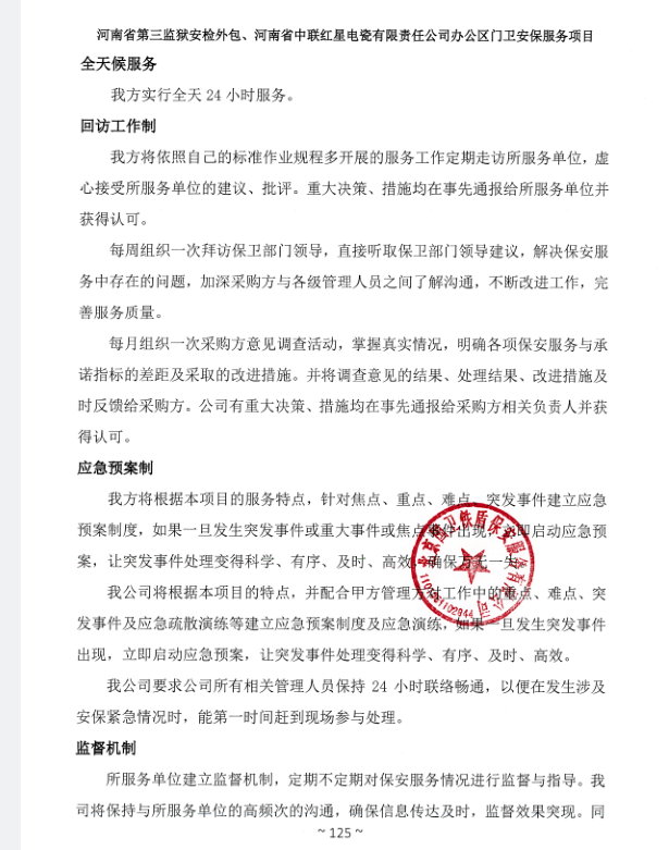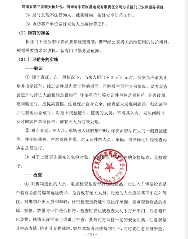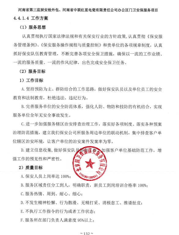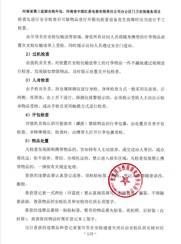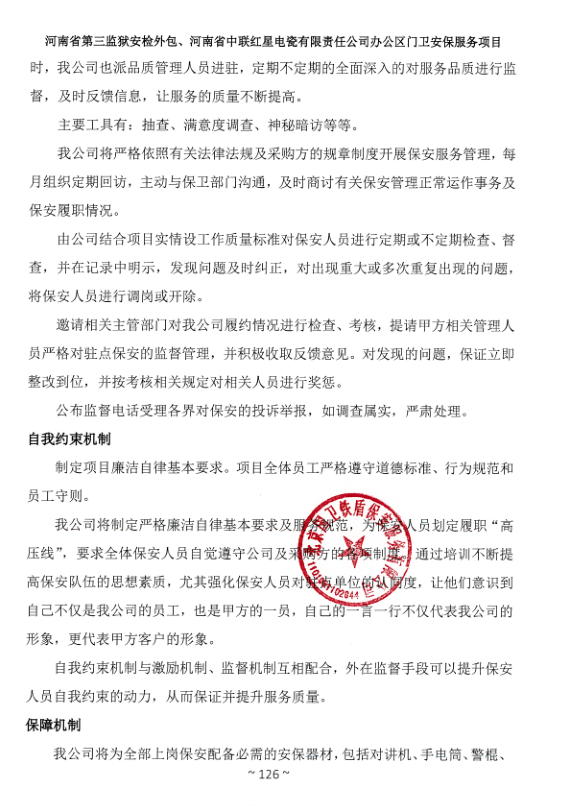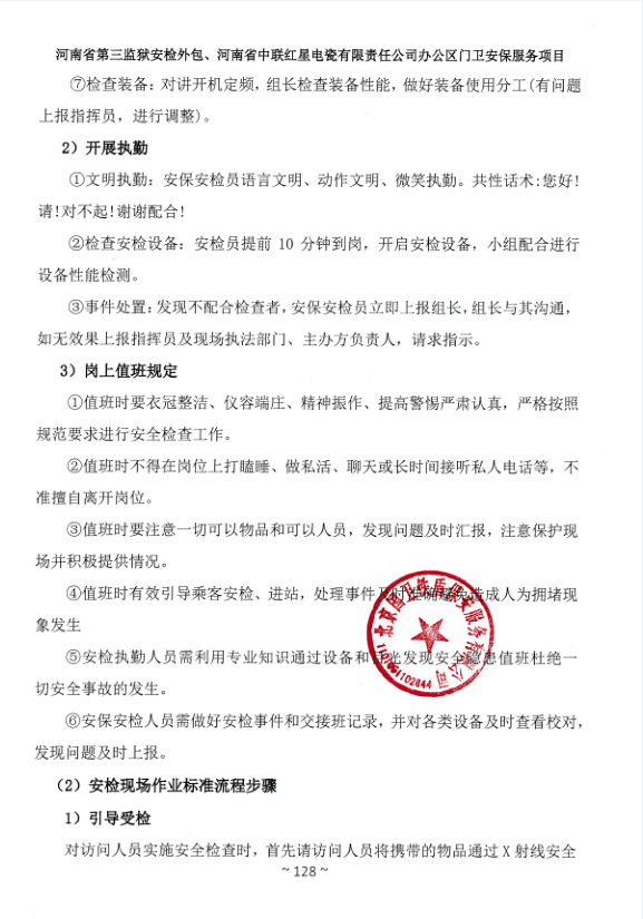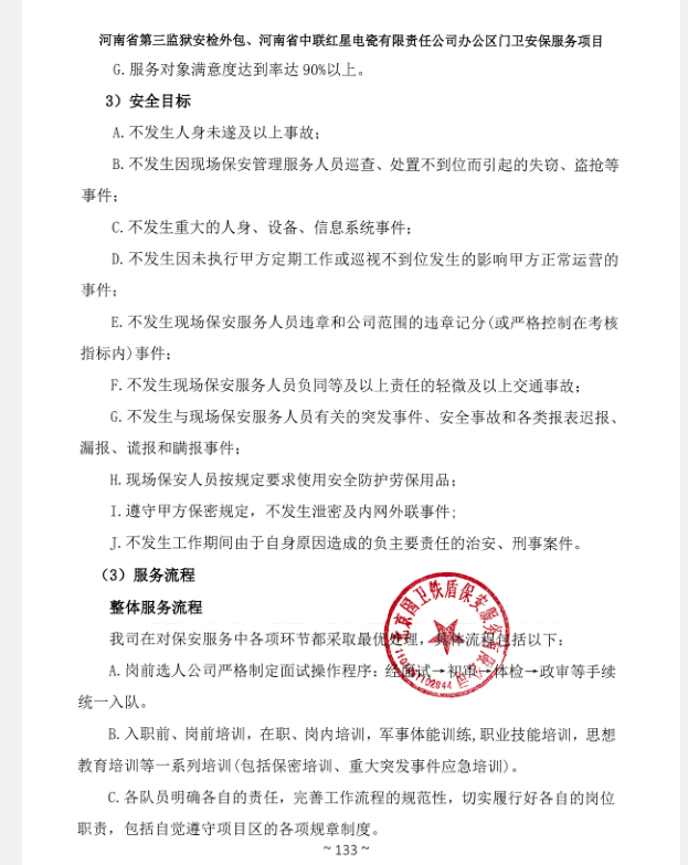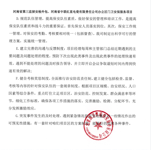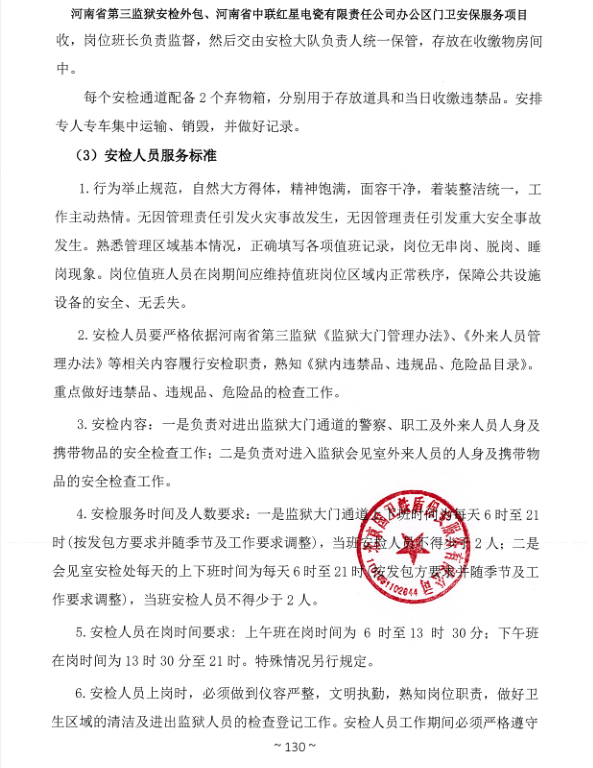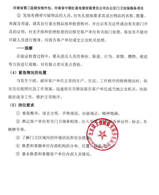 一、項目名稱:河南省第三監獄安檢外包、河南省中聯紅星電瓷有限責任公司辦公區門衛安保服務項目